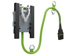 De EGO accuhouder met de accukabel geïntegreerd in de veiligheidslijn. De accuhouder kan eenvoudig bevestigd worden aan de klimgordel, het draagharnas of aan de hoogtewerker.